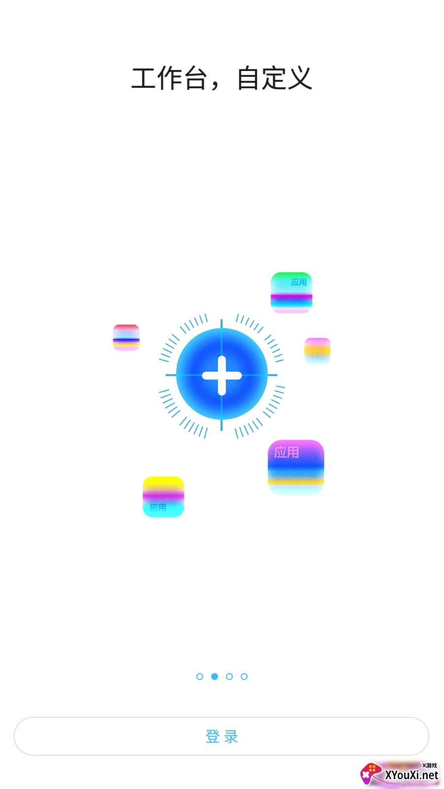 工作台定制,个性化: 采用卡片式内容展示,常用应用可自定义添加,打造专属高效工作入口。