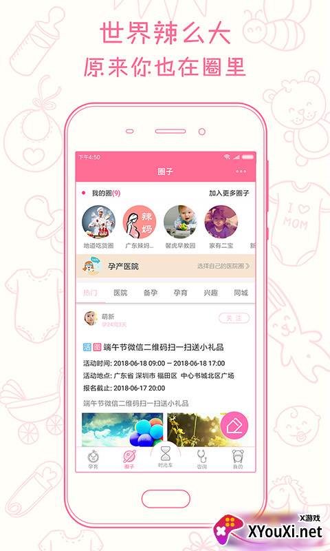 4. 聚合女性资讯,展现孕妈风采,实时关注宝宝的成长动态。