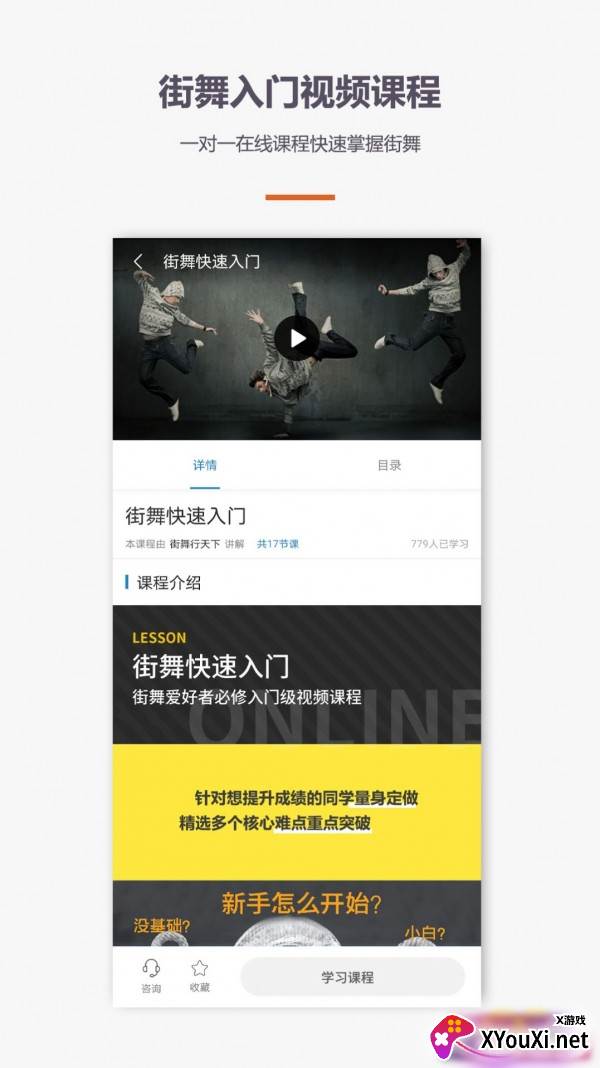 专为街舞爱好者量身打造的线上学习平台。海量课程,视频教学,让你随时随地沉浸在街舞的世界。更有专业老师在线答疑解惑,从零开始,循序渐进,助你轻松掌握街舞精髓。你可以跟随大神学习炫酷舞步,也能挥洒创意,设计属于自己的动作编排。