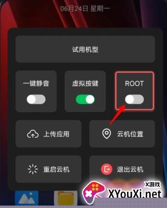 您可以根据需求,自由开启或关闭Root权限环境。进入云手机内部,轻触悬浮按钮,选择“开启Root权限”即可(请注意,试用机型暂不支持此功能)。