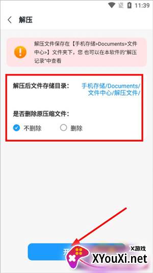 3、指定解压后文件的存放路径,随后点击“开始解压”。文件解压成功后,您便可在手机存储中轻松查阅。