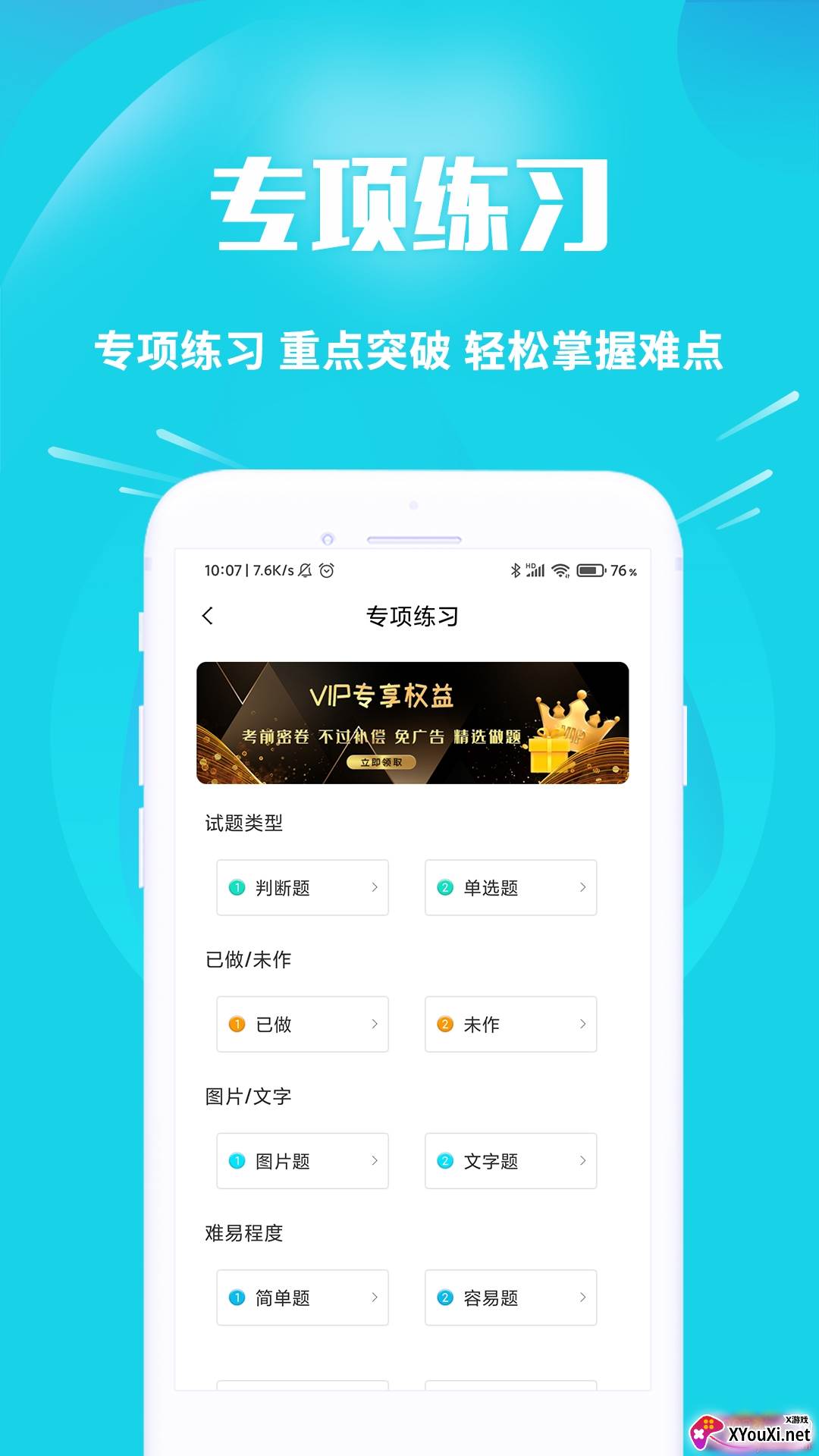 3. 强化练习:按照试题类型进行细致分类,包括文字题、图片题、判断题和选择题,帮助您巩固不同题型。