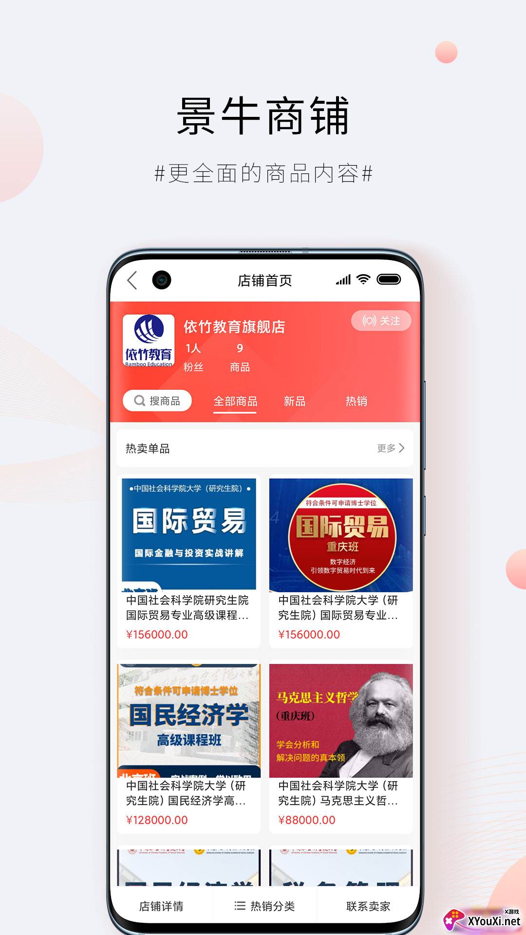 2. 景牛商铺,提供更全面的商品内容,满足你的学习装备需求。