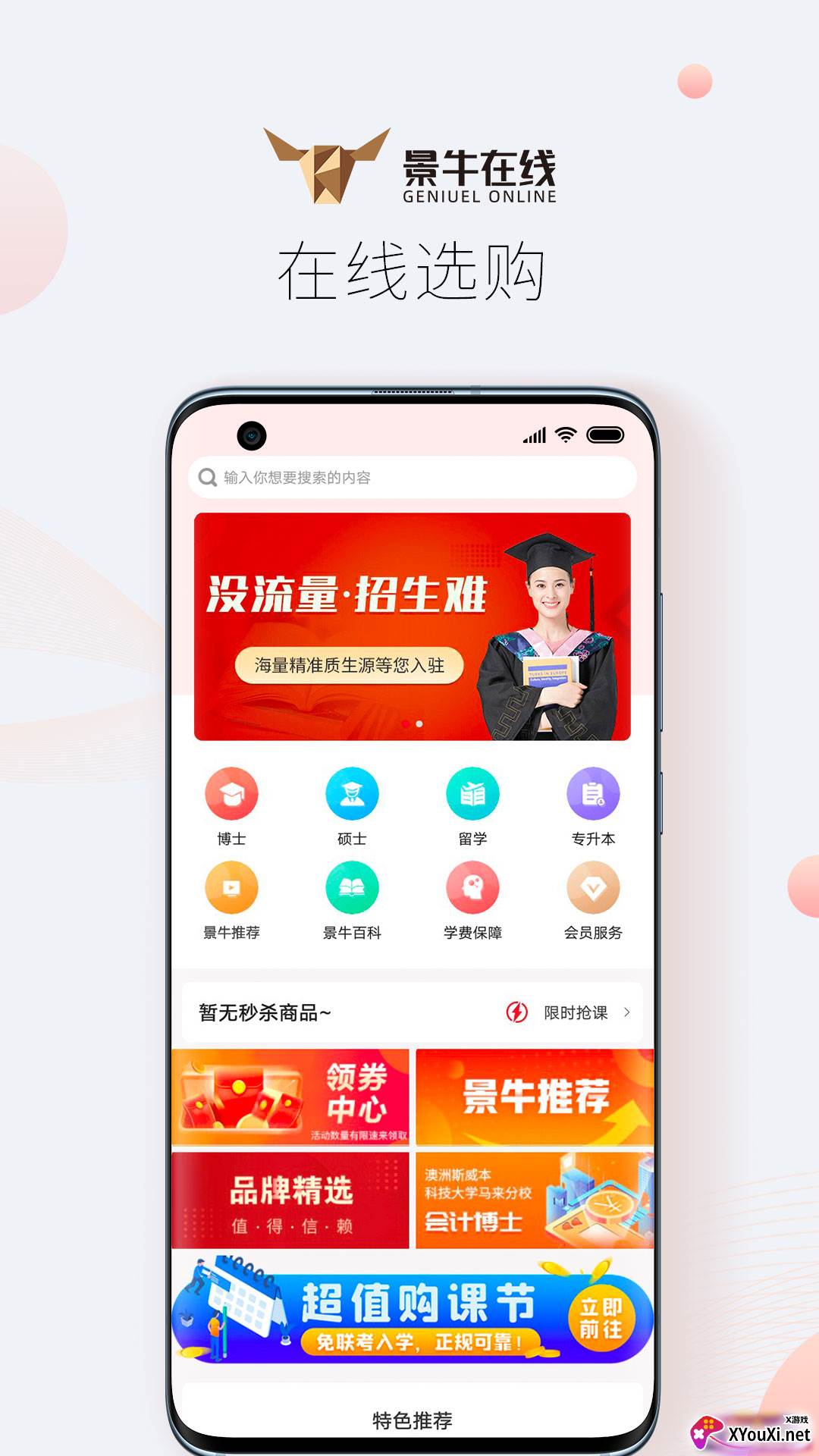 1. 全新上线,景牛在线app以其卓越的视觉设计和流畅的交互体验,瞬间提升你的学习效率,让学习生活更加便捷愉悦!