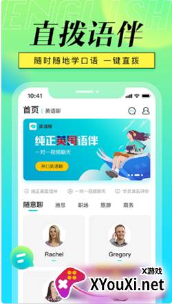2. **真人互动,随时随地:** 支持与外国友人进行语音/视频一对一实时互动,营造最佳练习氛围,让英语学习畅行无阻。