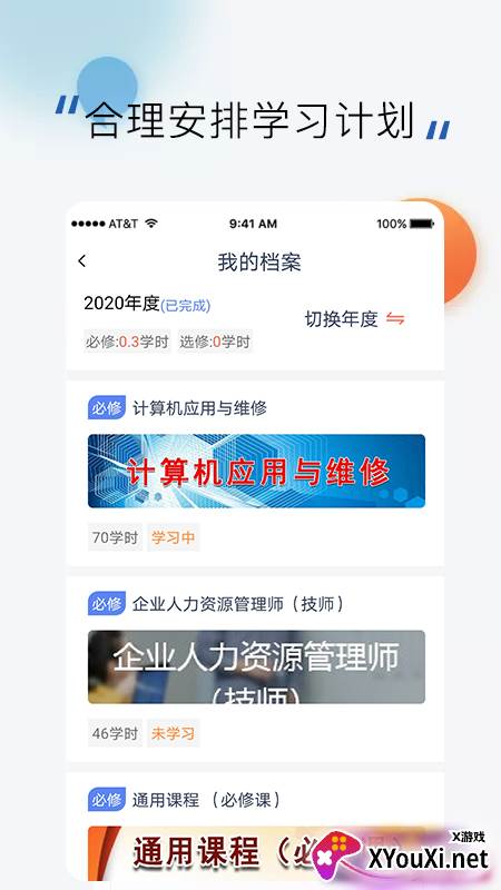 5. “我的档案”中心精准统计必修与选修课程的学时,让您的学习成果量化呈现。