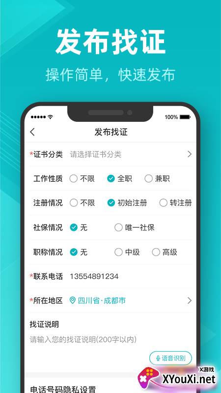 - 便捷发布: “发布找证”功能操作简便,快速发布需求。