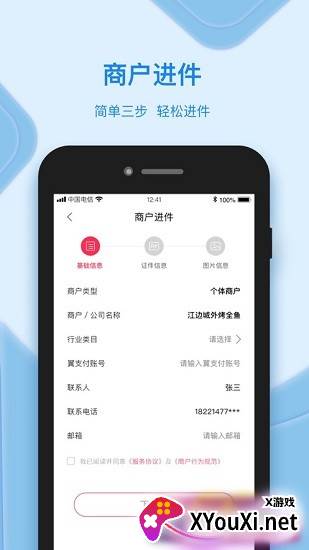 - 进件便捷: 商户入网流程简化,三步即可轻松完成。