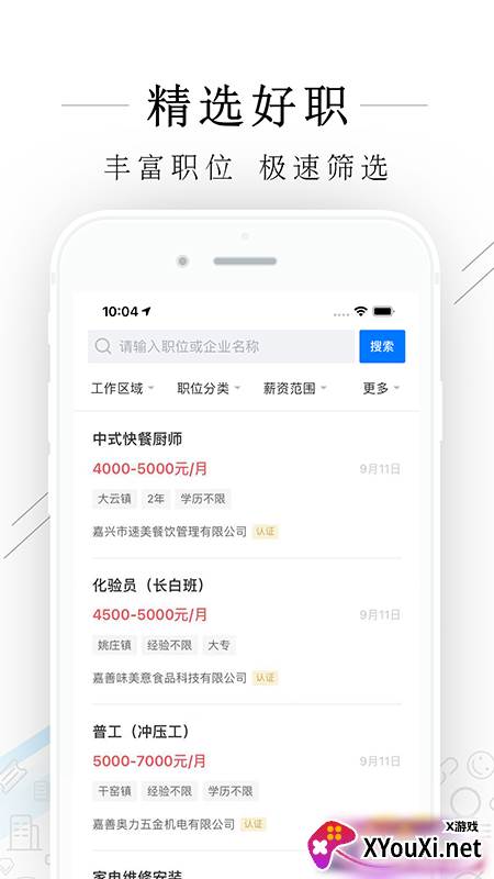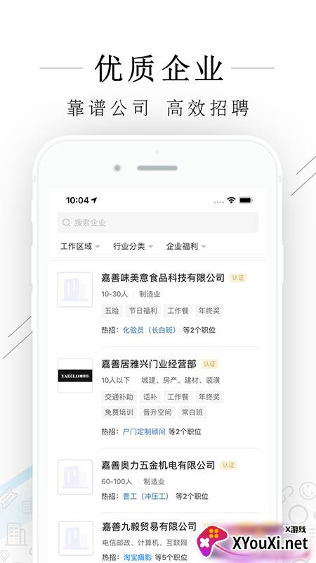 1、作为一款深耕本地的求职平台,我们网罗了嘉善各行各业的丰富工作机会。