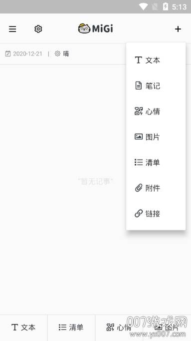 Migi时间轴日记随笔记版,一款界面清爽、轻便易用的手机记录应用。无论何时何地,它都能助你捕捉生活中的点滴,备忘事项,让美好不再遗漏。支持全场景快速记录,让你即刻分享精彩瞬间,感悟生活真谛。