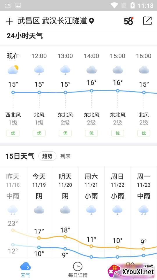 - 15日趋势图: 通过直观的趋势图,轻松掌握未来15天的天气状况,为您的出行计划提供有力参考。