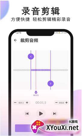 秀秀录音免费版为你带来了诸多惊喜。它提供音量增益、跳过静音等多种效果选择,更有屏幕常亮录音、通话暂停录音等贴心功能,适配各种复杂场景。一键录制,轻松实现音效优化。它还支持双麦克风立体声录音,并配备专业滤音器,显著提升录音品质。在音频格式方面,它提供无损质量的高清录音,让你在四种音频质量、四种录音格式、八种采样率、七种比特率之间自由选择,满足你最严苛的需求。录音剪辑功能也堪称强大,毫秒级剪辑工具让你精准裁剪,轻松去除冗余部分,更能将心仪的片段设置为专属铃声。