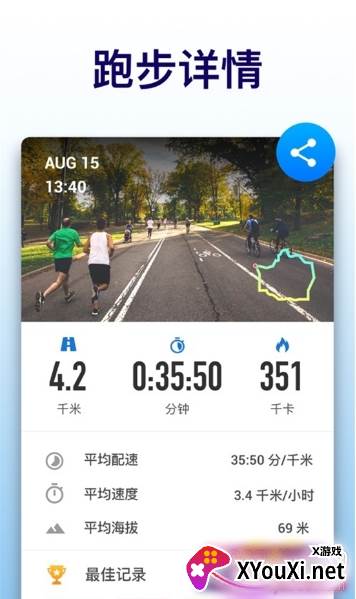 4、GPS路线绘制与分享——利用GPS精确记录您的跑步足迹,更可保存并与好友分享您的专属路线图。