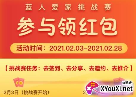 “不辞加一岁,唯喜到三春;红包到,福才到。”“蓝人爱家挑战赛 瓜分3000万”活动,秉持“无套路,轻松领红包”的设计理念。只需登录活动界面,轻松打卡,即可赢取丰厚红包。