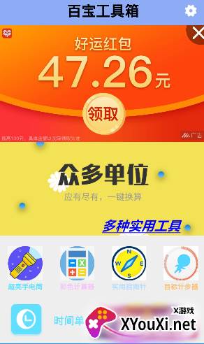 2. 工具百科,应有尽有:手电筒、计算器、指南针、计步器、单位换算……你想到的,这里都有!