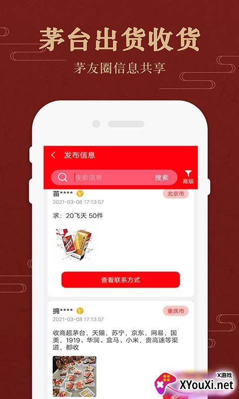 支持用户发布飞天茅台的出货、收货信息,平台汇聚全国茅粉,牵线搭桥促成交易,让买卖更加便捷。