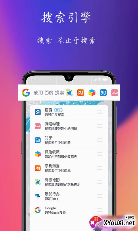 这款应用巧妙融合了百度、淘宝、高德地图、哔哩哔哩等众多搜索引擎,更赋予您自由定制的强大能力。想象一下,只需在搜索框内轻轻一点,便可直达小米便签、微信收藏夹,抑或您的待办事项列表。通过高度定制化的桌面搜索小组件,您将体验到前所未有的便捷:应用启动、网页直达、甚至是支付宝付款页面、微信扫一扫等应用内深度功能,都将化繁为简,一蹴而就。