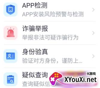 3. **恶意APP提醒:** 提供主动扫描检测和APP安装自动检测两种模式。用户可主动发起扫描,亦可在安装APP时触发安全检测,有效防止因隐私泄露或经济损失。对于通过非正常渠道下载的可疑APP,用户可利用诈骗举报功能提交至系统进行进一步验证。