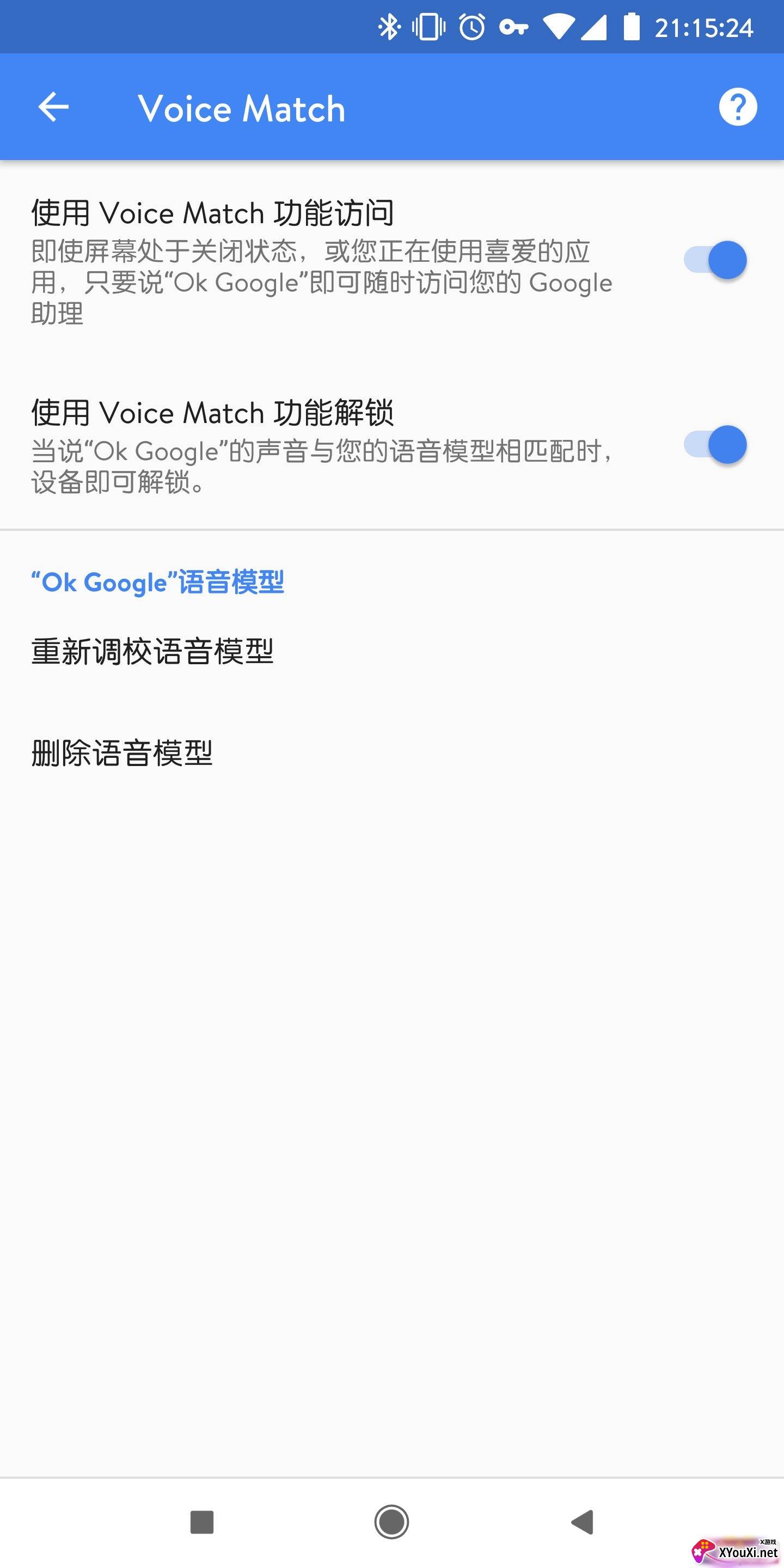 – 启用“OK Google”相关功能(可在“设置-语音-Voice Match”中配置)。