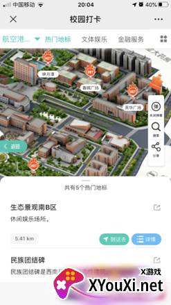 报到顺利,安顿好寝室后,别忘了好好游览一番美丽的校园。点击进入,探索校园热门景点,了解各类公共服务设施点位及学校地理信息。在景点打卡,分享照片,尽情感受大学校园的魅力。