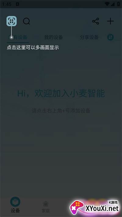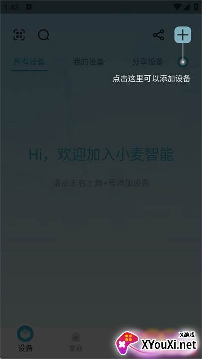 1. 在首页,轻点右上角的号,即可自主添加您的智能设备。