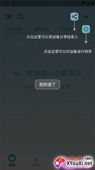 3. 轻触分享图标,即可将设备轻松分享给家人;在下方排序选项中,您可以自由调整设备的位置。