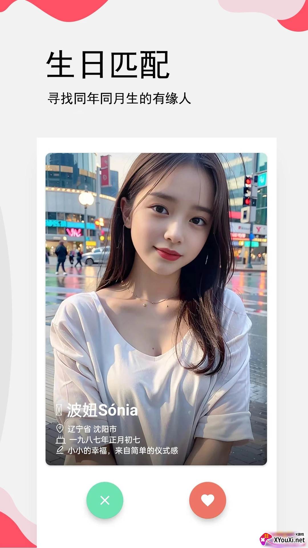 - 缘分匹配,惊喜邂逅: 根据您的生日,智能匹配同月同日生的有缘人,开启一段奇妙的缘分。
