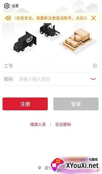 2. 打开APP后,输入您的工号和密码即可登录。若您尚未拥有账号,可按提示进行注册。
