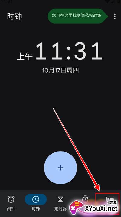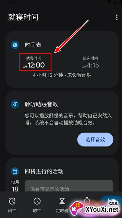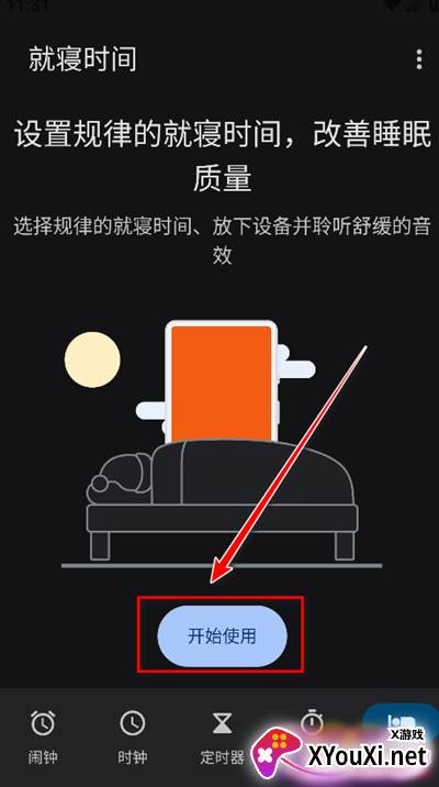 1. 启动谷歌时钟应用,轻点右下角的“就寝时间”选项。