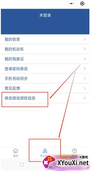 第二步: 进入小程序后,如出现“告知”弹窗,请直接点击“去授权”。若无弹窗,则先点击“免登录模式”,随后进入“个人中心”,选择“修改微信授权信息”进行授权操作。
