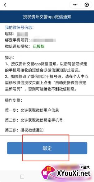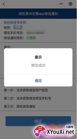 第四步: 完成所有权限允许后,点击“绑定”按钮,即可成功完成授权。