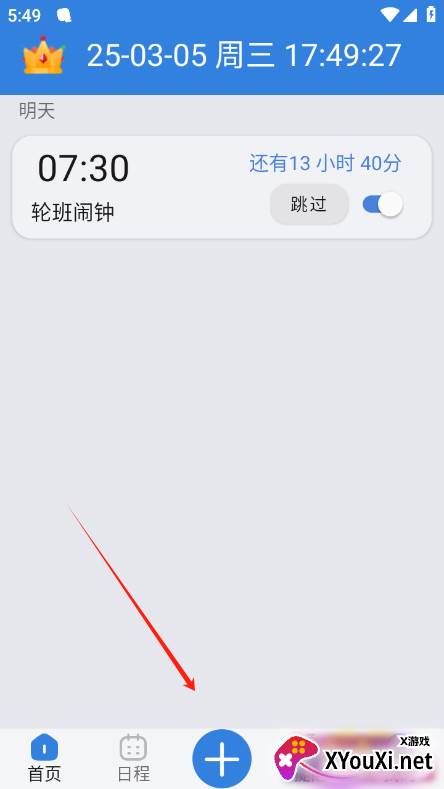 3. 点击屏幕上的“+”号,开始添加您的新闹钟。