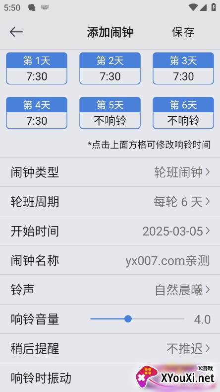轮班闹钟:专为医护、蓝领等需要倒班的人群设计。只需一次设置,即可在整个轮班周期内按预设时间规律响铃,省去手动管理多个闹钟的麻烦。