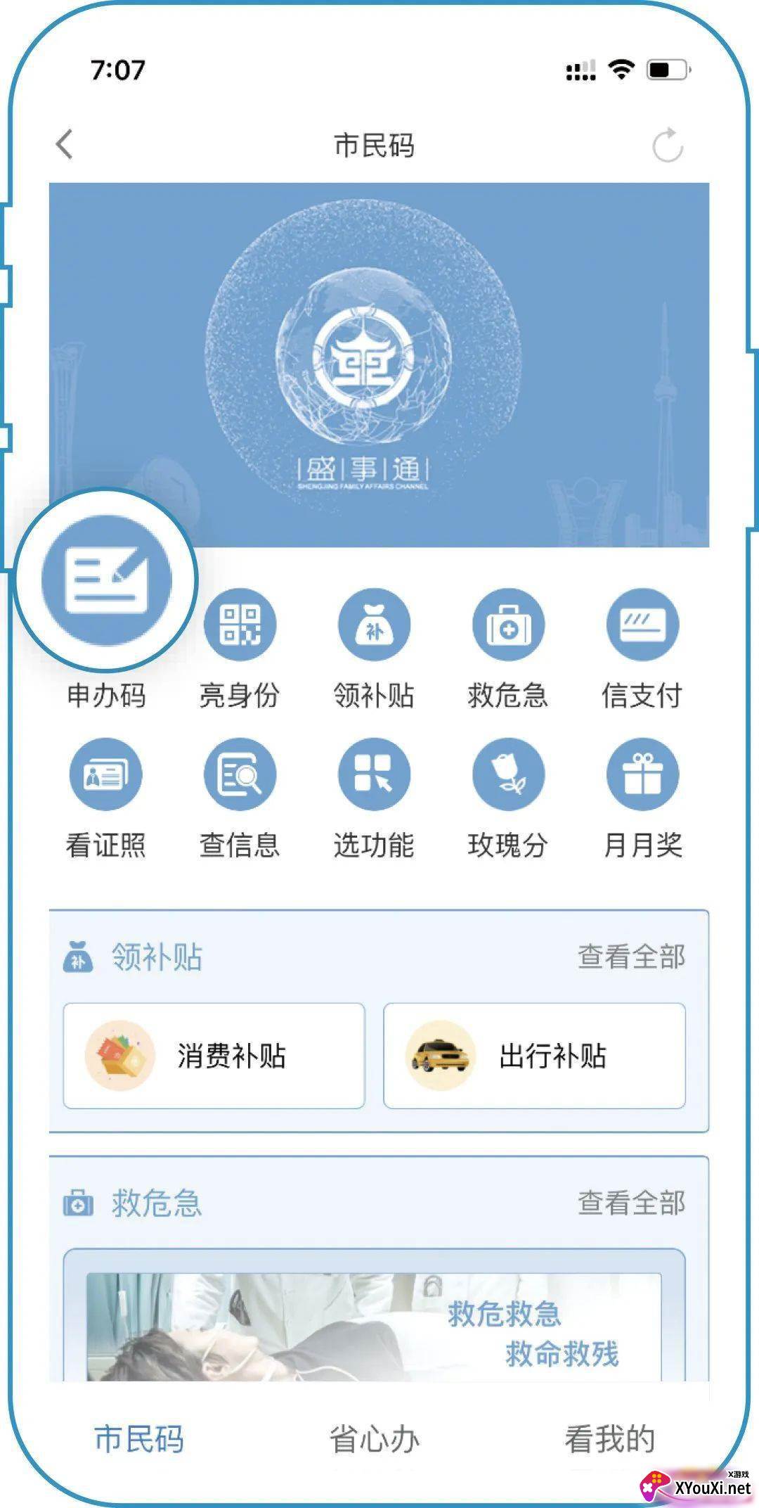 成功登录后,请务必留意屏幕左侧的底部,点击“市民码”,进入市民码板块。
