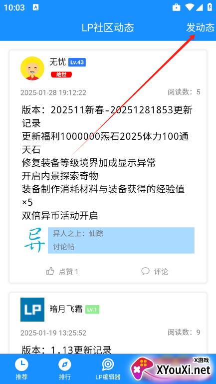 4、在“动态”版块,您还可以自由发帖,与志同道合的网友们畅谈交流。