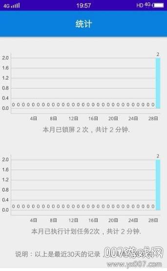3. 成果统计: 你的自律成果,一目了然。该功能会详细记录你在一定时间周期内,执行定时锁屏和计划任务的次数,以及累计的总时长。看着这些数据,你的自律之路将充满成就感。