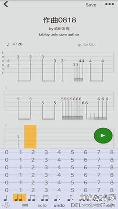 4. **专业编辑,指尖生花:** 插入和弦、曲谱,全屏吉他谱阅读编辑,APP支持专用曲谱文件格式的读写。更有互动式指法界面和特殊标签编辑键盘,乐谱的复制、粘贴、插入、删除,样样精通。