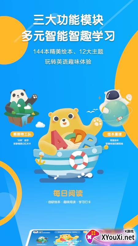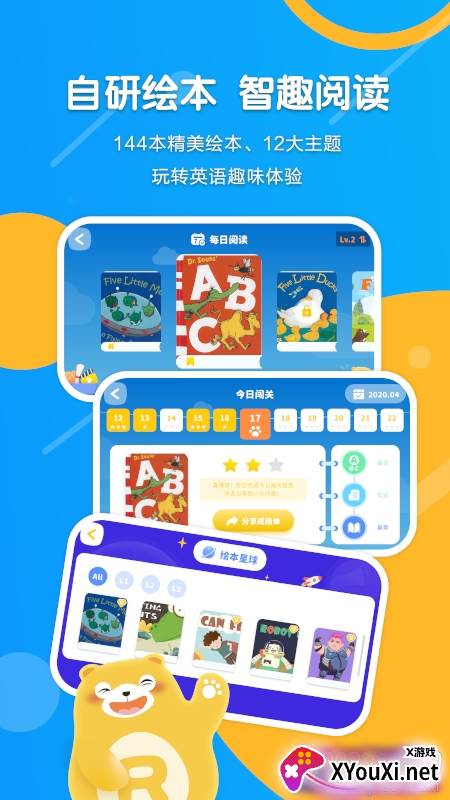 Read熊启蒙英语app,专为2至8岁的幼童精心打造,是一款集趣味性与教育性于一体的英语启蒙软件。它汇聚了海量精选的儿童英语绘本,并根据不同年龄段孩子的认知特点,量身定制了差异化的绘本内容与学习课程,旨在点燃孩子对英语学习的热情,让他们在快乐中茁壮成长。