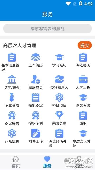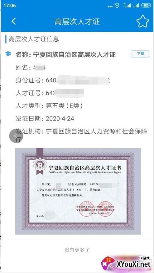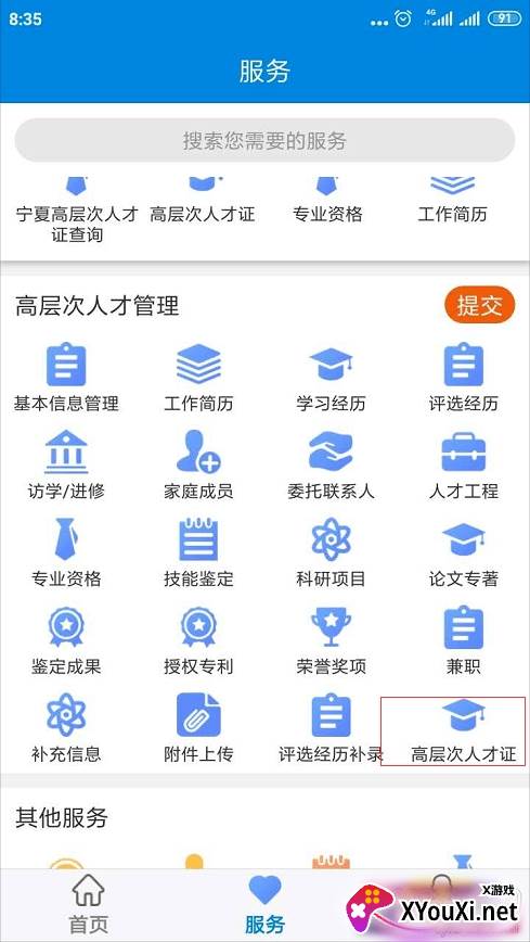 第二步: 打开APP,导航至“服务”界面。在“高层次人才管理”板块,找到“高层次人才证”选项。轻点“下载”按钮,即可获取您的专属人才证书。