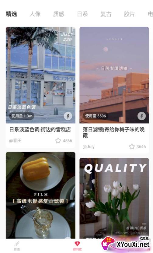 轻图修图app为你提供了琳琅满目的精美素材,让你的照片更富故事感和个性。更有海量壁纸随心挑选,为你的照片增添一丝可爱与趣味。想记录下此刻的心情?不妨为图片添上文字,让你的情感随图传递。此外,它还集成了多种创意功能:从意境泼彩的光色效果,到实时滤镜的美颜相机;从时尚趣味的模糊效果,到可爱的潮流贴纸;从瞬间提升大片感的镜像大师,到赋予照片唯美气息的艺术渐变。海量经典、唯美、百搭、现代风格滤镜,任你自由挥洒创意,让你的每一张照片都成为独一无二的艺术品。