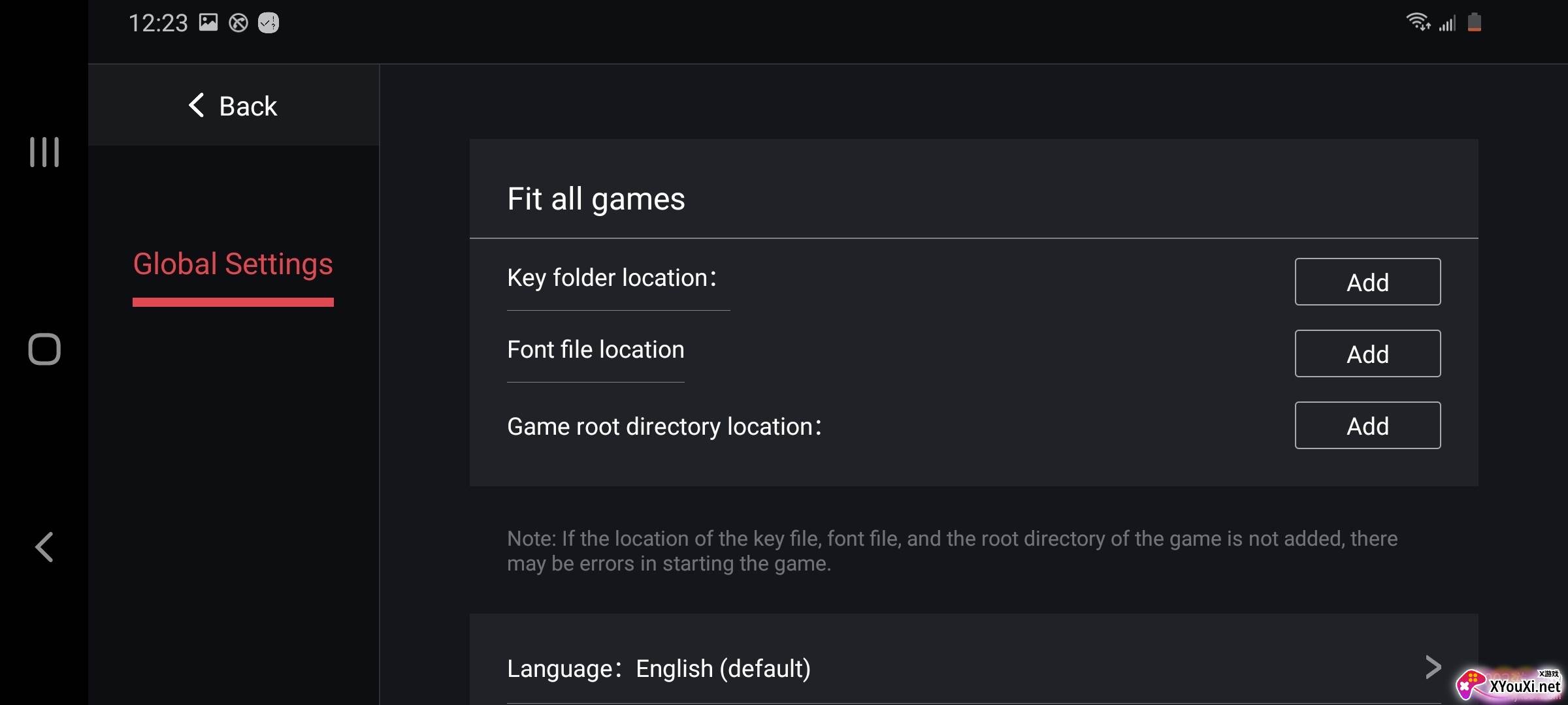 - 游戏根目录位置: 导航至“根目录”->选择“SwitchDroid”文件夹->勾选“game”文件夹,点击“确定”。