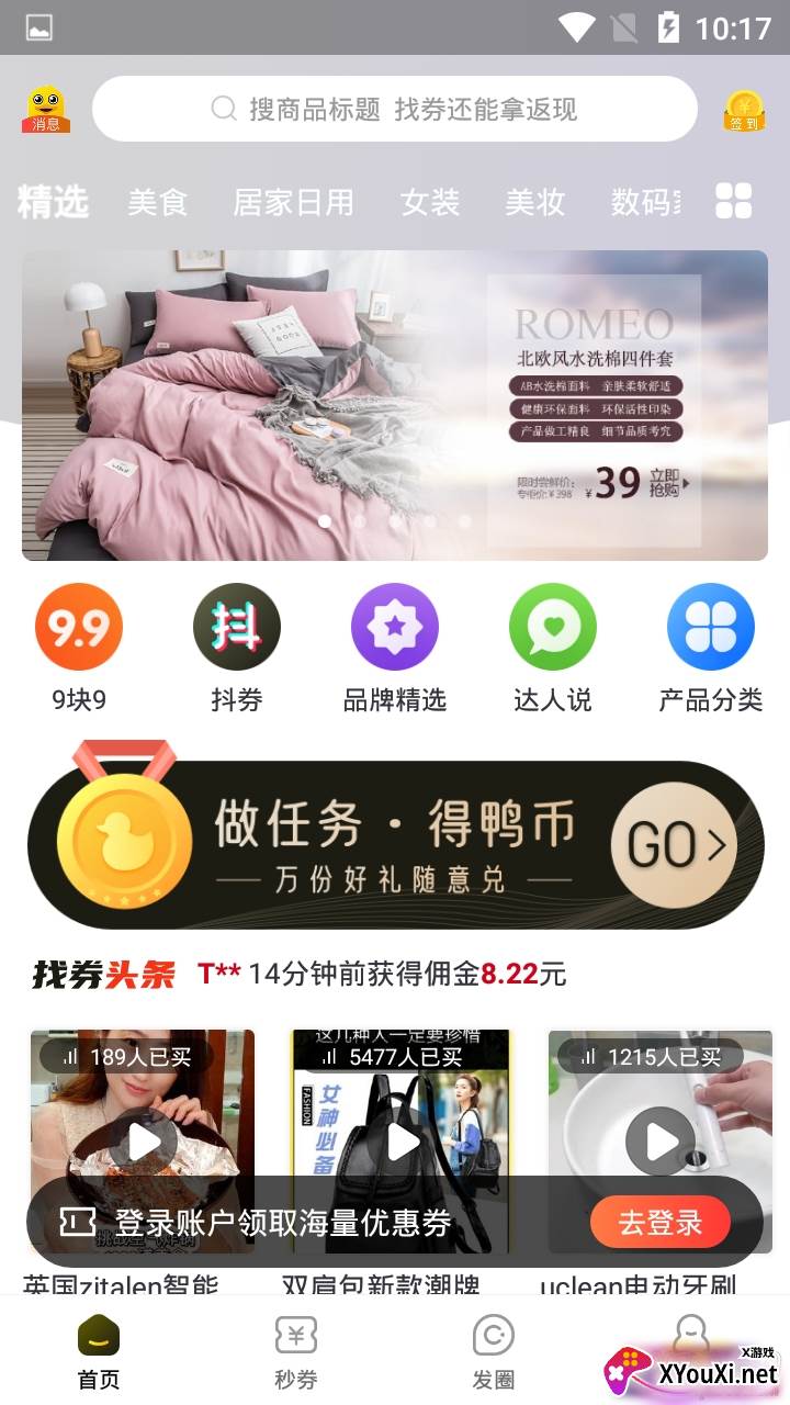 “找券鸭专业省钱福利版”致力于让每一位用户都能乐享购物优惠。在这里,您可以轻松领取海量购物券,结账时直接抵扣现金,让您的钱包鼓起来!无论您钟情于何种商品,只需在APP内搜索,便能精准定位,更有不容错过的折扣商品,让您每日都能发现惊喜低价。心动不如行动,将心仪好物纳入购物车,一键清空,或是邀请好友一同加入,让省钱成为一种分享的乐趣,平台上的每一位用户都能一同受益,共享这份实实在在的福利。