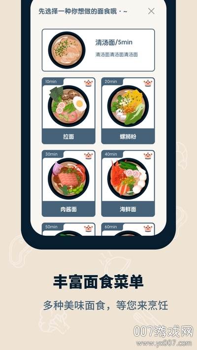- 海量面食菜单: 丰富的美味面食,等待你去探索和烹饪,每一次专注都有一份期待。