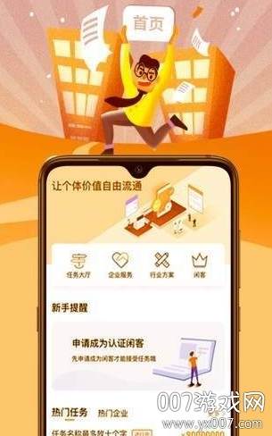 APP内置“任务大厅”、“企业服务”、“行业方案”、“闲散客人”等多元化功能,注册登录后即可轻松接收任务,让每一次付出都有回报。