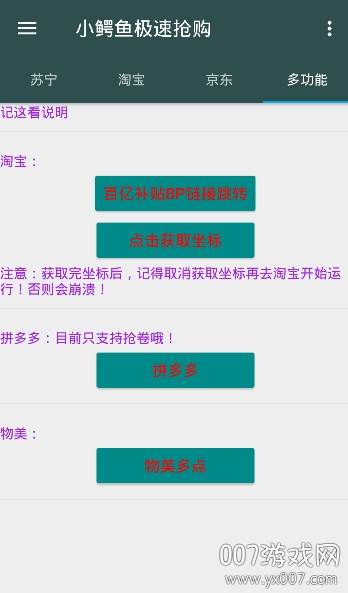 小鳄鱼极速助手,堪称抢购界的“万金油”,集物美多点、拼多多、京东、天猫、淘宝等平台的抢购功能于一身。它不仅能帮你秒杀茅台,更能让你在各大平台畅享低价购物的乐趣,功能之全面,令人惊叹!