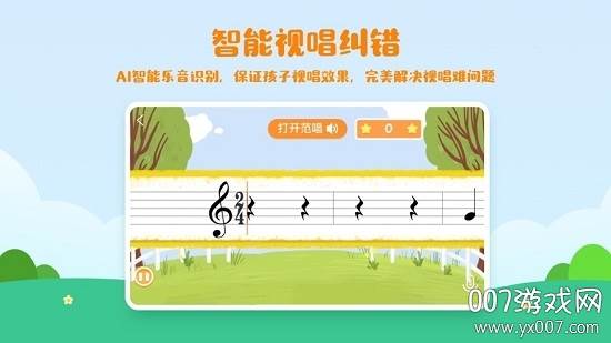 智能视唱纠错:借助AI智能乐音识别技术,精准捕捉孩子视唱的每一个音符,有效解决视唱难题,让每个孩子都能自信开嗓。