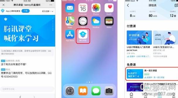 在中国,QQ几乎人手必备。腾讯课堂APP与QQ、QQ群实现了深度底层整合。学员在网站报名课程后,可以直接在QQ客户端找到已报名的课程,并一键进入课堂。