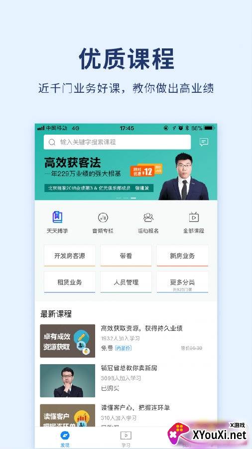 这是一个为房地产经纪人量身定制的专业学习平台。在这里,你将接触到由行业内知名大咖倾囊相授的专业培训课程。无论你是渴望精进销售技能,还是寻求职业生涯的突破,这个平台都能为你提供最前沿的知识和最实用的方法,助力你业绩飙升。