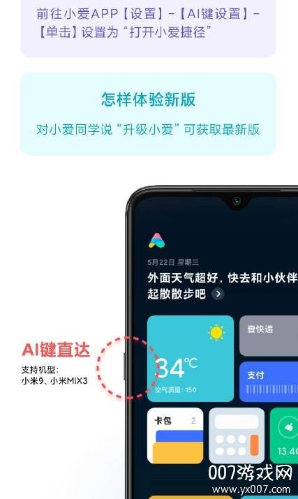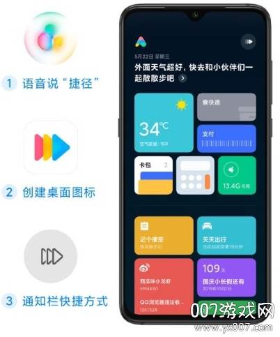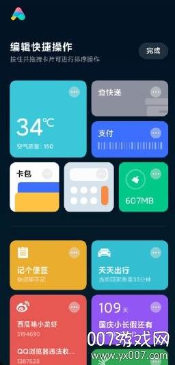 全新界面设计,能力全面升级,更有新玩法等你发掘。轻按手机侧边AI键(支持小米9、小米MIX 3等机型),即可唤醒小爱捷径,上百种功能丰富的捷径卡片,任你体验与添加。随时随地,轻松一点,便能直达你关注的信息或亟待完成的操作。长按卡片进入编辑模式,随心调整卡片顺序,进行更多个性化设置。