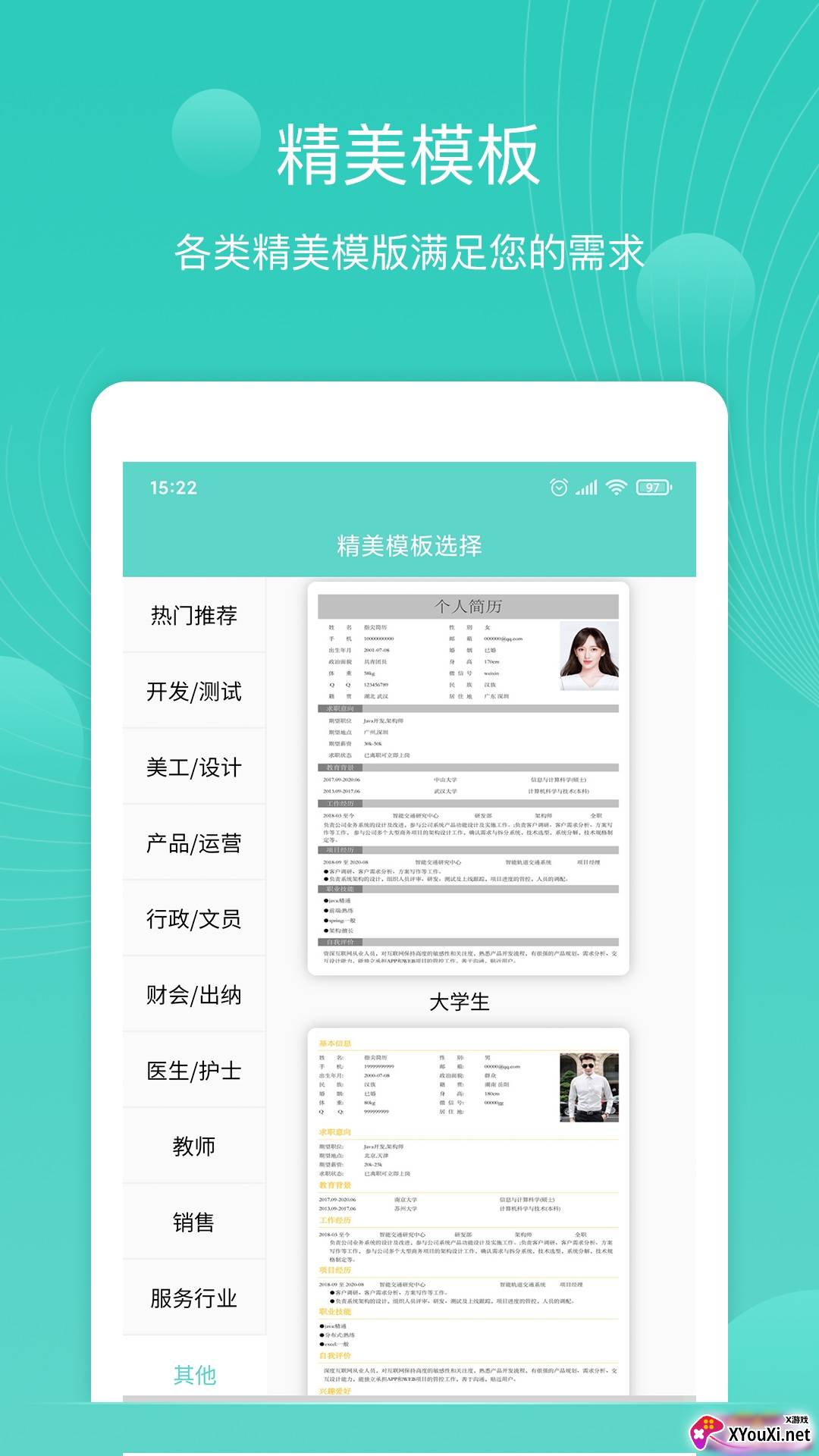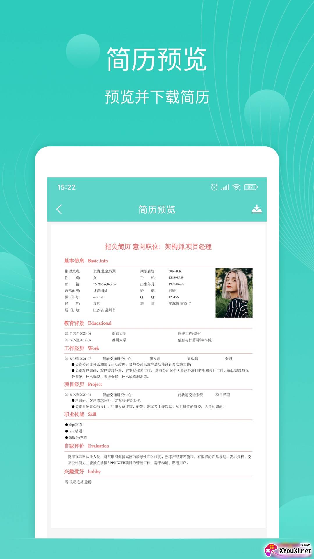 指尖简历app,一个高效便捷的在线简历服务平台,让您轻松找到心仪的简历范本。在当下求职大军中,一份出色的电子简历至关重要。本app集结了海量热门简历模板,助您快速制作出令人印象深刻的电子简历,从而大幅提升求职成功率。
